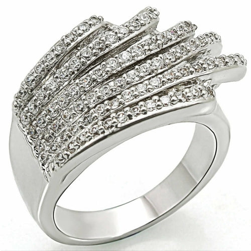 At the heart of the design are the AAA Grade Cubic Zirconia stones, meticulously set in a captivating arrangement. The clear CZ stones mimic the brilliance of diamonds, offering a luxurious sparkle that catches the light from every angle. The precision-cut facets create a mesmerizing play of reflections, adding an extra layer of glamour to this already enchanting ring.